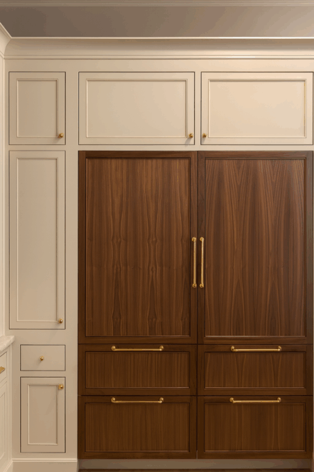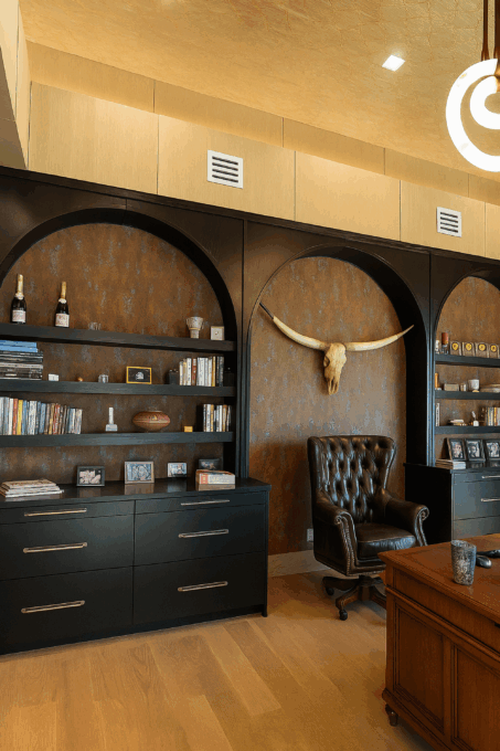 Sleek matte black cabinetry meets warm oak accents, blending modern minimalism with natural texture for a kitchen that’s both striking and inviting.